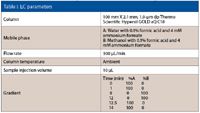 The LC and MS experimental parameters are detailed in Table I and Table II. Data acquisition was performed using proprietary software (Xcalibur, Thermo Fisher Scientific) as was data processing (Pathfinder, Thermo Fisher Scientific).