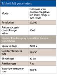 Table II: MS parameters
