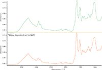 Figure 2: ATR spectra from powdered algae (top) and algae deposited on an aluminum foil surface (bottom).