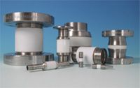 Insulator Seal's electrical breaks and envelopes are designed to provide high voltage isolation and consist of metal tube hardware (stainless steel) brazed to either end of a ceramic tube (alumina ceramic). Nominal tube sizes range from 0.75 in. to 8 in. for standard catalog assemblies, and custom break assemblies as large as 11 in. in diameter and 4 ft in length are available. The standard operating temperature reportedly is 450 °C for standard catalog break assemblies, and custom assemblies are available with operating temperatures as high as 900 °C. Insulator Seal, a division of MDC Vacuum Products, LLC, Hayward, CA;