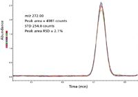 Figure 6: EI full-scan extracted ion chromatograms of m/z = 272 from 1 pg OFN, eight replicate injections, 3.3 Hz data rate.
