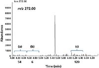 Figure 2: EI full-scan extracted ion chromatograms of m/z = 272 from 1 pg OFN.