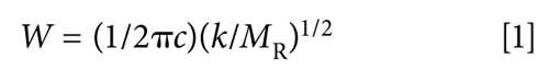 where W is the peak wavenumber position in cm-1, c is the speed of light, k is the force constant, and MR is the reduced mass. This equation, in my opinion, is the most important one in IR spectroscopy. It quantitates the correlation between peak position and molecular structure, it is the reason why two molecules have different chemical structures if they have different IR spectra, and it is why we can use IR spectra as a chemical fingerprint.