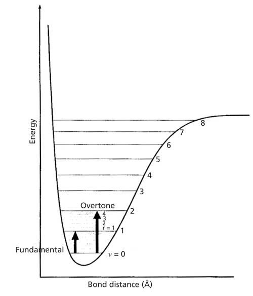 There are essentially three different types of infrared (IR) peaks: fundamental, overtone, and combination bands. To obtain an understanding of these peak types, we need to have a hasty brush with quantum mechanics.
