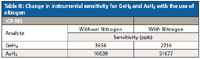 Table III: Change in instrumental sensitivity for GeH4 and AsH3 with the use of nitrogen