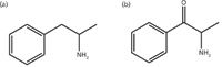 Figure 1: Chemical structures of (a) amphetamine and (b) cathinone.