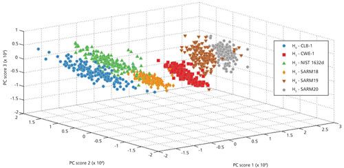 Figure 2: Principal component analysis of coal samples analyzed by LIBS.