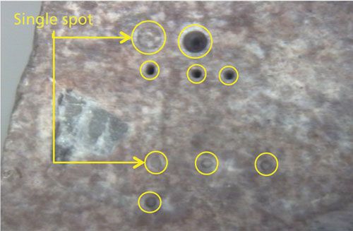 Microanalysis for chemical mapping is applied to heterogeneous samples and requires a high lateral resolution (usually defined by the laser spot size). Depending on the requirement for spatial resolution they can be subdivided into: macro-LA (>100 µm), micro-LA (1–100 µm), and nano-LA (<1 µm). Figure 5 shows a few ablation crater examples that were made using 50- and 200-µm laser spot sizes on a heterogeneous tuff rock.