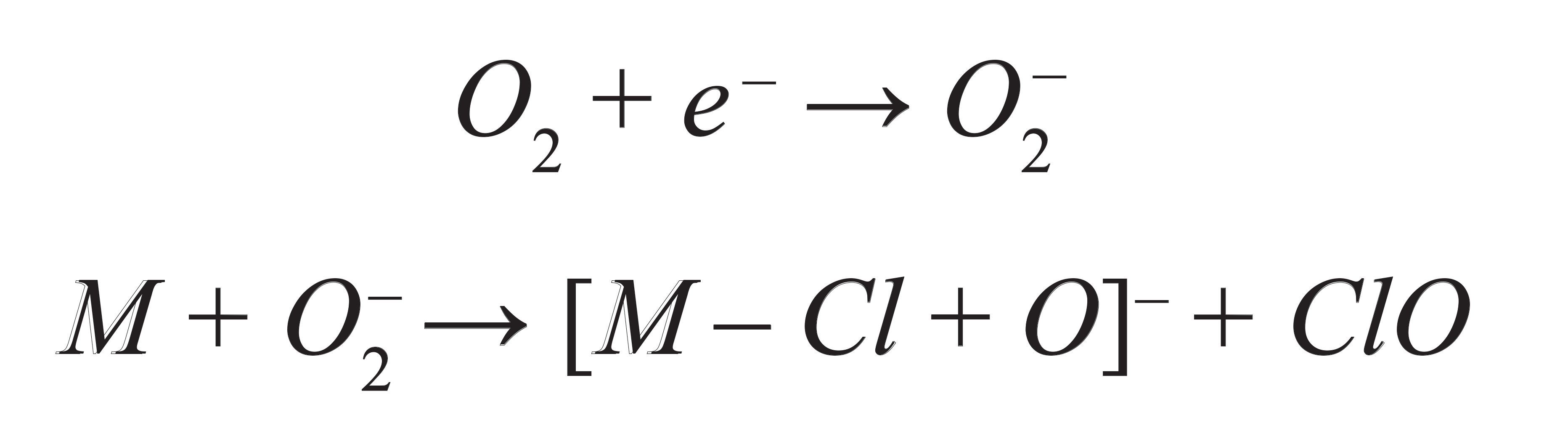 Herein, the formation of [M-Cl+O]- can be attributed to the formation of a superoxide ion (O2-) by electron capture followed by its chemical reaction with PCNB. This mechanism can be explained further by analyzing mass spectra for PCNB analyzed with an APCI source, which revealed a monoisotopic peak at a nominal mass of 274 Da. The nominal monoisotopic mass of a PCNB molecule is 293 Da and the observed mass loss of 19 Da can be explained by the loss of chlorine (nominal monoisotopic mass of 35 Da) and the addition of oxygen (nominal monoisotopic mass of 16 Da) to form a negatively charged ion of PCNB. Also, experimentally observed isotope patterns of the PCNB ion matched very closely to theoretical isotope patterns of the PCNB ion with four chlorine atoms, which further hinted that the PCNB loses one chlorine atom in an APCI ion source. Low mass spectra of an APCI ion source were checked to confirm the formation of superoxide reagent ion species that could react with PCNB to ionize it. We observed that the signal for both superoxide ion (O2-) and PCNB increased by a factor of roughly 300 and 30, respectively, when the mobile phase was changed from a mixture of methanol and water with 0.1% formic acid and 2 mM ammonium formate to a mixture of methanol and water. This further demonstrated that the superoxide ion plays an important role in the ionization of PCNB in an APCI source.