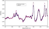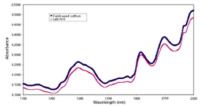 Qualitative NIR Spectral Analyses: Spectral analyses were performed on wide-micronaire-range cotton fiber samples, both in the laboratory and in the field, using the portable NIR analyzer. Typical cotton fiber NIR absorbance and first derivative spectra for laboratory and field measured samples are given in Figures 1 and 2. Very good NIR spectral agreement was observed between the laboratory and field measurements, with several major cotton absorption peaks and regions clearly identified in both locations. For both types of measurements, NIR spectral differences between samples with varying micronaire were observed (Figure 3). The NIR field measurements were fast (<2 min/sample) and easy to perform.