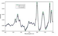 Figure 3: Typical NIR cotton fiber first derivative spectra, different micronaire levels, Brimrose Luminar 5030 portable NIR analyzer, 1100â2300 nm.