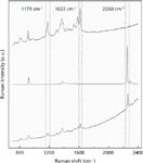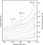 Figure 2: Representative Raman spectra of mixed solutions with different concentrations of crystal violet. Raman bands (at 1179, 1622, and 2260 cm-1) used for quantitative analysis are indicated by arrows.