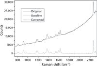 Figure 3: Illustration of the baseline correction of Raman spectra.