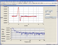 In this section, a few example experiments are illustrated. Some were produced utilizing a polyethylene card mounted on the xyz-stage; centered and positioned for maximum transmission. The spectrometer used here (TeraSpectra, Applied Research and Photonics) allows analysis of samples in solid, liquid, or gaseous states. For specimens that may be dissolved in aqueous or in organic solvents, the solution is dispensed on a substrate. For example, 20–30 μL of solution is placed on a polyethylene card and allowed to dry at room temperature to produce a spot. Alternatively, 30–50 μL of solution is dispensed on a glass slide and dried on a hot plate at ~40 °C to create a spot. A xyz-stage is used to introduce the spot in the beam path. The stage helps position the spot for maximum interaction by the beam. Although the terahertz beam is collimated to produce a homogeneous field over a large diameter (~1 in.), in real systems, the collimated beam still has some intensity distribution that resembles a wide Gaussian peak. As a result, the xyz-stage is used to position the sample spot at the most intense portion of the beam. For liquid samples, a special cuvette was used that has a wide area (~1" dia) and short path length (~1 mm). This is especially suitable for aqueous solutions because water absorbs terahertz radiation relatively strongly; although a 2–3 mm pathlength in aqueous media is allowable with reasonable transmission because of the high power source installed in spectrometer. For gaseous samples, pathlength is not an issue: A sealed rectangular container fitted with gas-in and gas-out orifices is used, with transparent side walls for beam propagation. In all cases, the sample being measured is introduced in the beam path without any external disturbance of the sample. At that point, the front-end software is used for recording the interferogram. A snap-shot of the front end is shown in Figure 4.