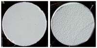 Figure 5: Terahertz demonstration sample (diameter: 2 in.; thickness: ~0.35 in.) from Dr. Wilkinson's laboratory. Left: smooth side; right: rough side.