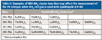 Table II: Examples of REE-NH3 cluster ions that may affect the measurement of the Pb isotopes when NH3 cell gas is used with quadrupole ICP-MS
