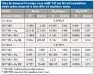 Table III: Measured Pb isotope ratios in NIST 981 and 982 with and without matrix spikes, measured in three different acquisition modes.