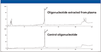 The interest in oligonucleotide-based therapeutic drug candidates has increased dramatically in the last few years as research groups look at capitalizing on advances in aptamer, siRNA, and miRNA chemistries. Parallel advances in drug delivery technologies have allowed these potent intercellular modifiers to be delivered systemically and transported efficiently into target tissues. As candidate therapeutics move down the drug development path past compound synthesis and in vitro testing, there is a need to understand how such compounds behave in vivo. This requires understanding the pharmacokinetics of the oligonucleotide and its generated metabolites. This is a difficult proposition because it requires isolating the small amounts of oligonucleotide from plasma that contains very high amounts of proteins, salts, lipids, genomic DNA, mRNA, and cell debris. These matrix contaminants can interfere with the liquid chromatography–mass spectrometry (LC–MS) analysis that is used to identify and quantitate the therapeutic oligonucleotide and its metabolites. What further complicates the entire absorption, distribution, metabolism, and excretion (ADME) process for oligonucleotide therapeutics are the chemical characteristics of oligonucleotides — their polar and polyanionic qualities make it difficult to use standard separation procedures to clean up plasma samples for LC–MS analysis methods.
