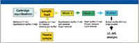 Efforts were undertaken to demonstrate the utility of using the SPE protocol for isolating short-chain oligonucleotides from serum and plasma samples with results that were comparable to what one would expect from performing ADME/pharmacokinetics studies. The key to getting any quantitative LC–MS data from a plasma sample is to remove all potential contaminants that might interfere with electrospray efficiency during the LC–MS run of the oligonucleotide. Interfering compounds from serum and plasma include salts, proteins, and lipids; the SPE cartridges use a proprietary, mixed-mode SPE sorbent to isolate short-length (less than 100mer) oligonucleotides from other components. A representation of the SPE procedure is shown in Figure 1; the procedure uses buffers that maintain near-neutral pH throughout the process to avoid unwanted modifications of the oligonucleotide (depurination for DNA below pH 5 and 2'-3' isomerization for RNA above pH 8).