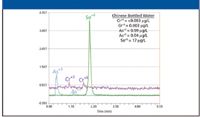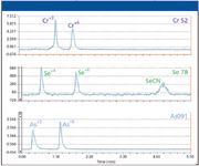It also should be noted that the higher baseline for the Cr species in Figure 6 (compared with As and Se) is the result of using compromised reaction cell conditions to allow the simultaneous monitoring of all elements. With optimized dynamic reaction cell conditions, the baseline would be much lower, as shown in previous work (11). The elevated baseline does not hamper the measurement of samples containing low levels of chromium, as will be shown later.