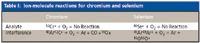 However, by using a suitable reaction gas together with optimization of the quadrupole electrical fields, a dynamic reaction cell can virtually eliminate the effect of these polyatomic interferences. After reviewing ion–molecule reaction mechanisms, optimization studies were carried out using oxygen as the reaction gas. Both 52Cr+ and 80Se+ ions do not react with oxygen, while the polyatomic ions 40Ar12C+ and 40Ar40Ar+ do. The ion–molecule reactions for both elements and their interferences are shown in Table I.