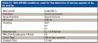 Table III: DRC-ICP-MS conditions used for the detection of various species of As, Cr, and Se