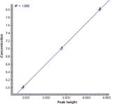 A calibration can be based on a user-defined peak area or peak height as shown in Figure 3. The left and right baseline points of the peak can be altered by simply clicking and dragging the points dynamically.