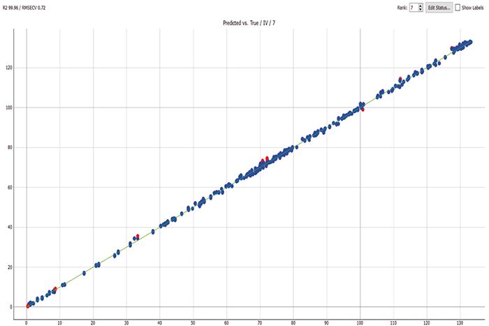 Spectral Sage™ PLS Quantitative Analysis software was used to develop partial least square calibrations for various parameters.