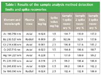 Table I: Results of the sample analysis method detection limits and spike recoveries