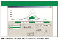 The standard sample introduction kit was used (glass cyclonic spray chamber, standard glass concentric nebulizer, and 2-mm center tube) because the samples contained low amounts of total dissolved solids. Wavelengths were selected for each of the elements of interest (Table I). Using the auto-optimization function of iTEVA software (Thermo Electron), the plasma parameters were optimized to produce a set of optimum parameters (Table II) for the elements of interest. The standards and samples were then run. The subarray plots of each of the wavelengths were examined and the optimum wavelength and background correction points were selected. Figure 1 shows the subarray plot of the nitrogen peak at 174.272 nm for each of the samples analyzed. It is from here that the integration area and the background correction points can be examined and repositioned if necessary.