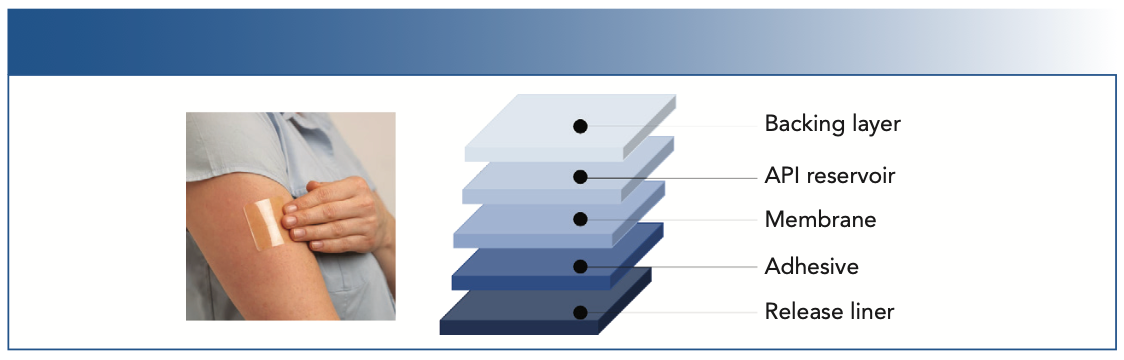 FIGURE 1: A typical transdermal patch and its layer composition.