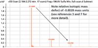 Figure 3: Isotopic cluster for sulfadimethoxine showing the A+1 and A+2 ions, showing the relative isotopic mass defect of S (3,7).