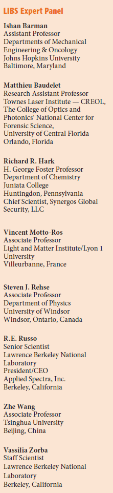 Our panelists also foresee a number of other new developments in LIBS in the coming years. These include handheld units, improved spectrometers and charge-coupled device (CCD) detectors, multisensor modalities for fast LIBS sensing, increased undergraduate teaching using LIBS, and application-specific uses such as biologics.