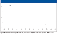 The product-ion mass spectrum of the ion with m/z 57 (Figure 17) does not strongly support the formation of the ion with m/z 55 as a product from the loss of a hydrogen molecule because of the relatively low intensity of the peak at m/z 55; however, the indication that the ion with m/z 55 is formed from the ion with m/z 57 is obvious.