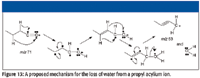 It has been reported, based on deuterium-labeling studies, that acylium ions will lose a molecule of water (3). Although this report did not propose a mechanism for this loss, one possibility is shown in Figure 12. This would explain the peak at m/z 95 as being the loss of H2O from the acylium ion with m/z 113. If this mechanism is true, then there should be a corresponding peak at m/z 53 formed by the loss of H2O from the acylium ion with m/z 71 (Figure 13). Examination of the cluster of peaks just below m/z 57 shows that there is a peak at m/z 53, albeit very small.