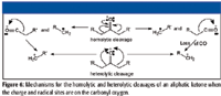 For a possible indication of which ion is represented, look for a peak that is 28 m/z units higher in the mass spectrum. Be careful, the peak 28 m/z units higher could represent an acylium ion that loses CO, or it could represent another aliphatic ion that loses H2C=CH2. The mass spectra of ketones usually will have peaks representing acylium ions produced by homolytic cleavage of molecular ions, peaks representing aliphatic ions formed by the loss of CO from acylium ions formed by homolytic (alpha) cleavage in response to the charge and radical sites being associated with the carbonyl oxygen, and aliphatic ions that are formed by heterolytic cleavage of the molecular ion (Figure 6). At an integer m/z value resolution, the peaks representing acylium and aliphatic ions can often be isobaric. This complicates the problem.