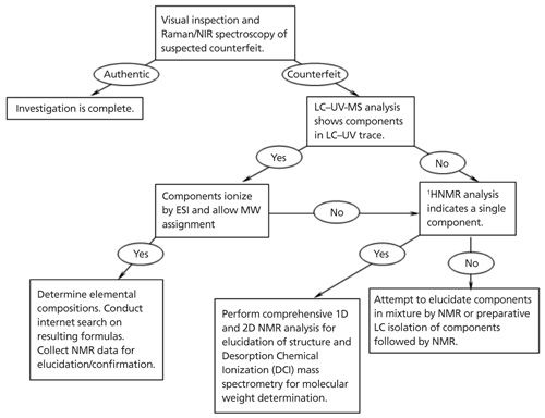 Figure 1: Decision-tree diagram of the general strategy for counterfeit product analysis.