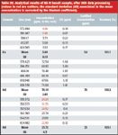 For some elements, the concentration range of this basalt sample might be different from that specified in the software. For example, Ti oxide, with a certified concentration of 2.61%, exceeds the maximum concentration defined in the software (1.09%). The sample results in Table III demonstrate that the Eu 372-nm line value was actually an outlier (positive bias), as anticipated previously in Figure 2 with the Ti influence. It was similar for the Sc 353.373-nm line, as confirmed by a postvisualization in the software with a Ti interference when its highest concentration was set up at 3%. Actually, other lines of Sc have been rejected because the statistics detected too high a variation in the replicates for the 357.634-nm line, and too high a dispersion from the mean for the others. No outlier was found for Nd, and the multiline result obtained was excellent, with a recovery of 100.2%.