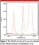 At any time, the analyst can visualize all lines available in the S3-base for each element, making it possible to understand why some lines have been rejected by the software. Figure 3 is an example of a line that has not been selected because of a severe interference from titanium, although its sensitivity was adequate.
