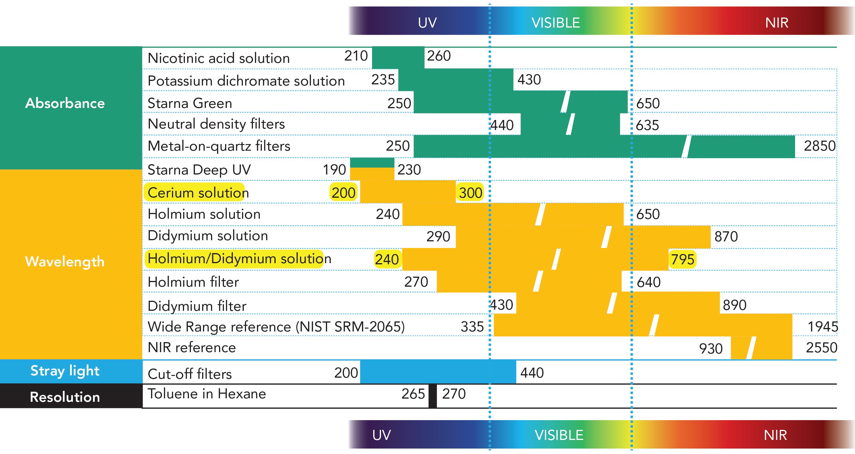 FIGURE 5: Traceable CRMs for the UV-vis-NIR spectral range of 190 nm to 2850 nm (21).