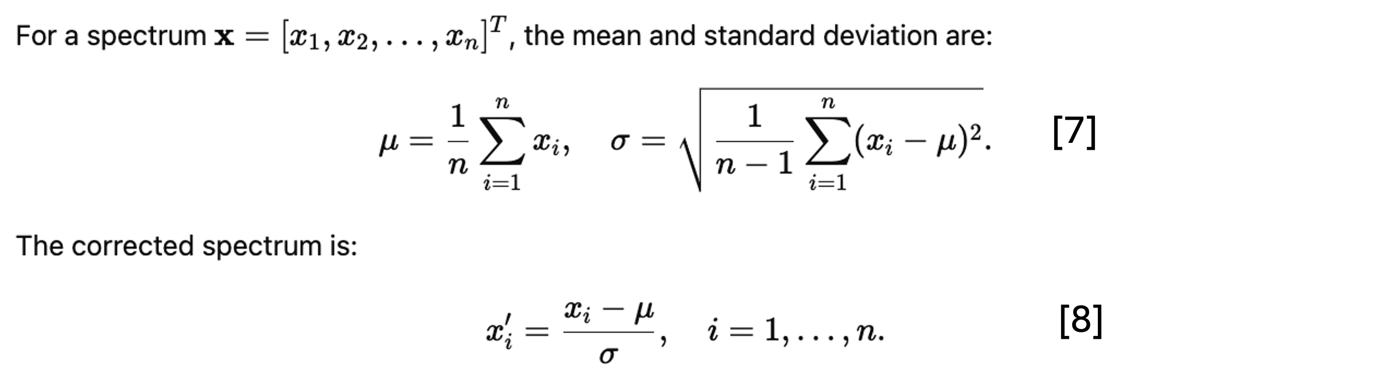 (8) Barnes, R. J.; Dhanoa, M. S.; Lister, S. J. Standard Normal Variate Transformation and De-Trending of Near-Infrared Diffuse Reflectance Spectra. Appl. Spectrosc. 1989, 43 (5), 772–777. DOI: 10.1366/0003702894202201.