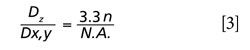 Thus, for a given excitation wavelength, the depth of field is inevitably larger than the laser spot size for both the metallurgical and immersion objectives with the highest achievable N.A. equal to 0.95 and 1.4, respectively.