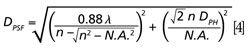 where Dph represents the diameter of the back-projection of the pinhole onto the sample plane, which can be calculated in micrometers knowing the total magnification factor of the microscope with a given objective (6). Note that n is the refractive index of immersion liquid that is supposed to be used and to match the refractive index of the sample under study and, thus, to remove the refractive index discontinuity at the sample surface mentioned above.