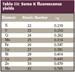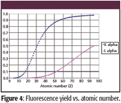 The last factor, the probability of Kα radiation rather than the production of an Auger electron, is called the fluorescence yield ωK. Figure 4 shows the difference in fluorescence yield between the Kα and Lα spectral lines.