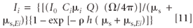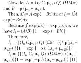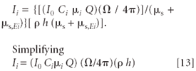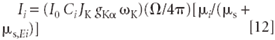 Then the incoming intensity that is absorbed by element i in the volume element under consideration and thus available to produce Kα fluorescence is found by multiplying this fraction [2] by equation 1: