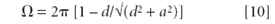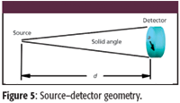 In the geometry as shown in Figure 5, the detector (radius, a) is a distance (d) away from the source of radiation, the fluorescence produced by the element under consideration. Then the solid angle is given by