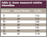 Some values for the Kα/Kβ intensity ratio are given in Table II.