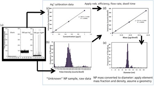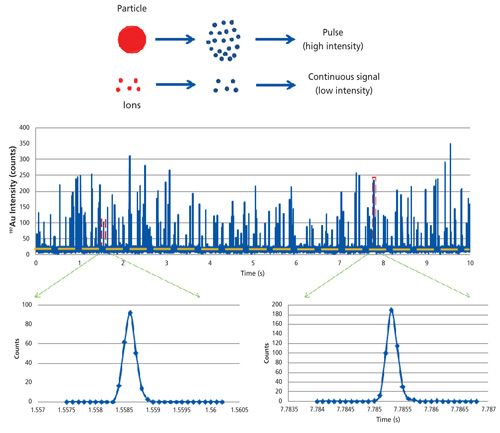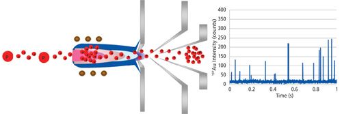 One technique that is proving invaluable for detecting and sizing metallic nanoparticles is single-particle inductively coupled plasma-mass spectrometry (SP-ICP-MS) (3). Its elemental specificity, sizing resolution, and unmatched sensitivity make it extremely applicable for the characterization of ENPs containing elements such as Ag and Au and compounds such as TiO2 and SiO2 that have been integrated into larger products such as consumer goods, foods, pharmaceuticals, and personal care products.