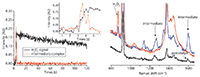 As an example, a oxidation reaction in which H2O2 is added to a solution containing a precatalyst is chosen. In this reaction only 0.25 mM precatalyst is present (far below that which can be detected by Raman spectroscopy but its absorption at 785 nm means that its spectrum is resonantly enhanced) and H2O2 is added to give a final concentration of 250 mM which decreases slowly over time. Within 1 s of addition of H2O2, however, the precatalyst becomes activated with an intermediate that is present only with a maximum concentration of 0.05 mM for 0.5 s and has an absorption band near 785 nm which results in enhancement of its Raman spectrum by ca. 10,000 times through resonance. However, it is observed only because high signal to noise spectra can be recorded at 200 ms intervals.