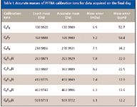 Table I: Accurate masses of PFTBA calibration ions for data acquired on the final day